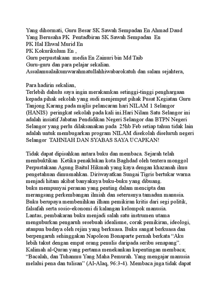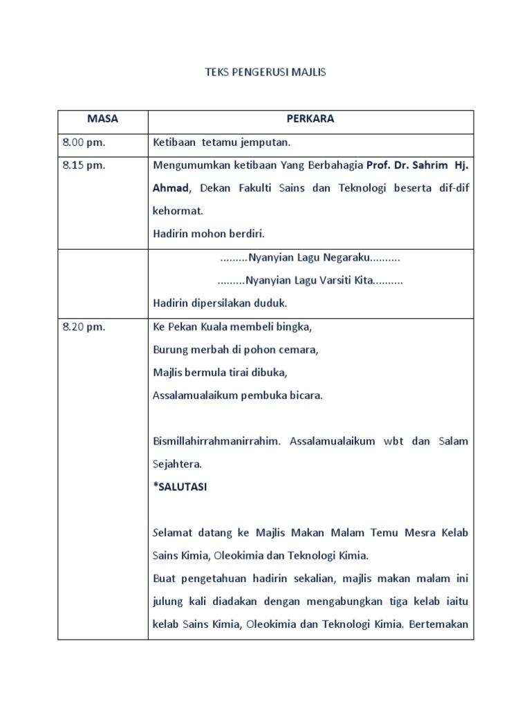 Mengumumkan ketibaan yang diraikan en. Sebelum ini saya pernah dilantik dan dijemput mengacara beberapa buah majlis formal. Muhammad hissam bin sani diiringi tuan pengetua masuk ke dalam dewan. Ucapan perasmian oleh tuan pengetua & gimik pelancaran4. Kita kembali ke segmen teks pengacara majlis.