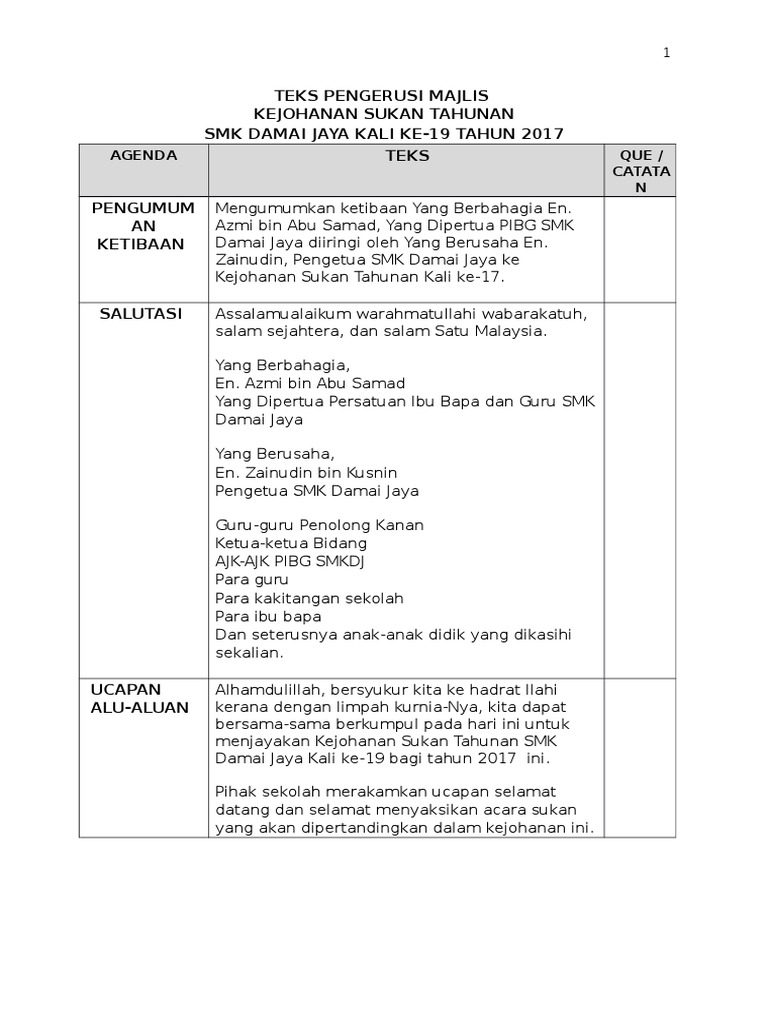 Doc teks ucapan perasmian olahraga dan balapan 2017 lin ahmad academia edu. Doc teks sukan tahunan sekolah aimerul haidhar academia edu. Doc teks pengacara perasmian dan penutupan kejohanan balapan dan padang sk ulu sipitang tahun 2014 teks pengacara majlis kechik nakal academia edu. Doc ucapan perasmian kejohanan olahraga tahunan smk bandar baru salak tinggi tahun 2017 fafa rara academia edu. Teks ucapan pengacara majlis penutup kursus dev gaol.